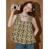 NewOpen 25 Years: Summer French Floral Ruched Spaghetti Strap Tank Top for Women - S5123