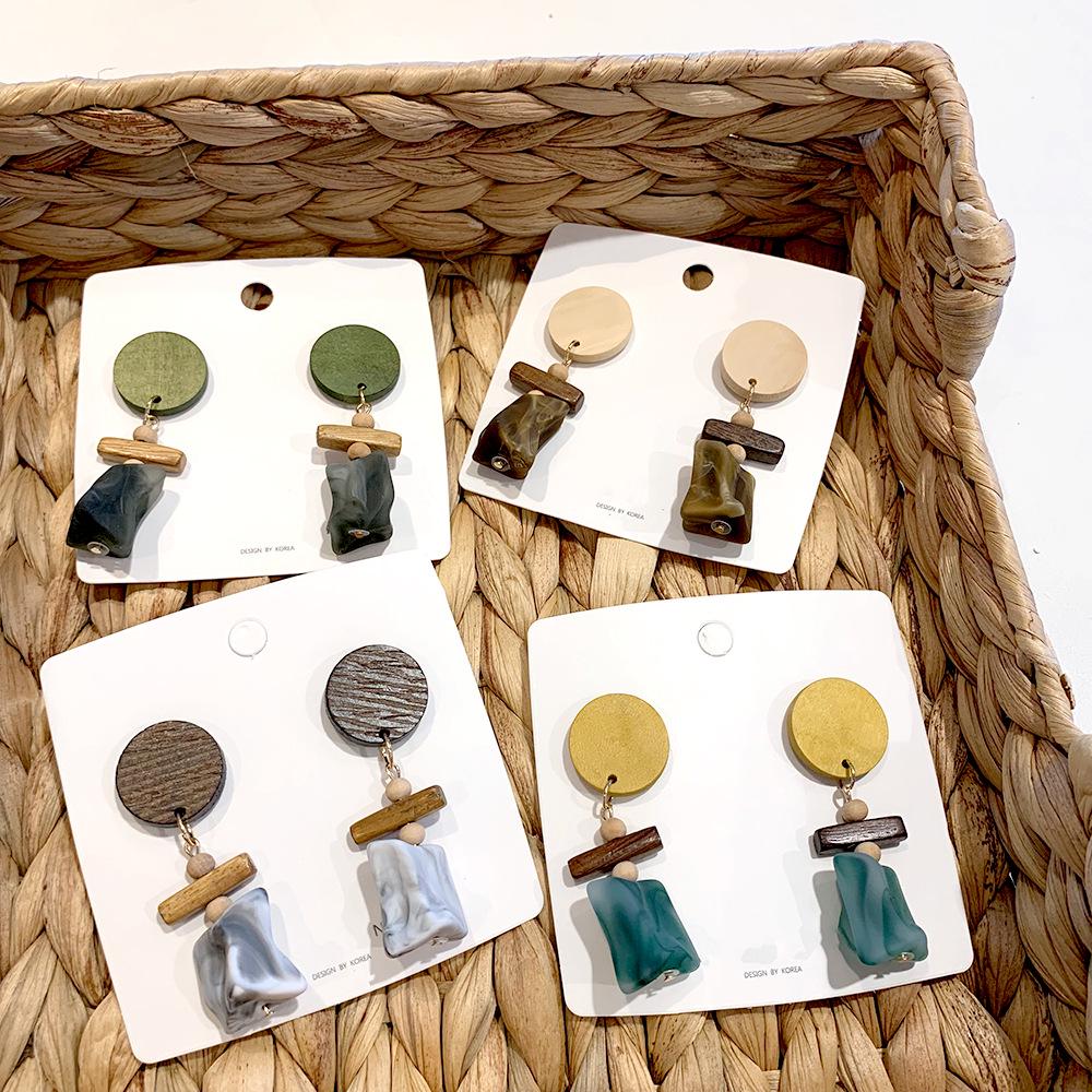 Women's Dongdaemun Style Colorful Resin & Wood Retro Dangle Earrings