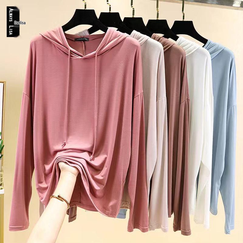 Women's Casual Oversized Modal Long-Sleeve Hooded T-Shirt - Slimming, Thin, Spring Sunscreen Top