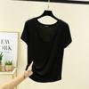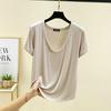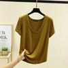 Top lejer cu mânecă scurtă și gât în U din modal pentru femei - Culoare uni, Mărimi mari, Cămașă de vară