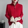 Pulover Toamnă Iarnă Culoare Solidă Fermoar Mânecă Lungă Tricotat Elegant Haine Femei Guler Pe Jumătate Deschis Topuri Potrivite cu Orice