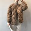 Jachetă scurtă de modă pentru femei, toamnă-iarnă, culoare uni, model diamant, fără guler, cu gât rotund, căptușită cu bumbac ușor, palton de bumbac, îmbrăcăminte exterioară