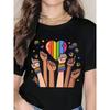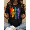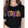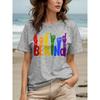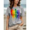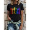 Women's T-Sleeve Rainbow Letter Pattern Printing Retro Fashion Round Neck Short-Sleeved Women's Clothing