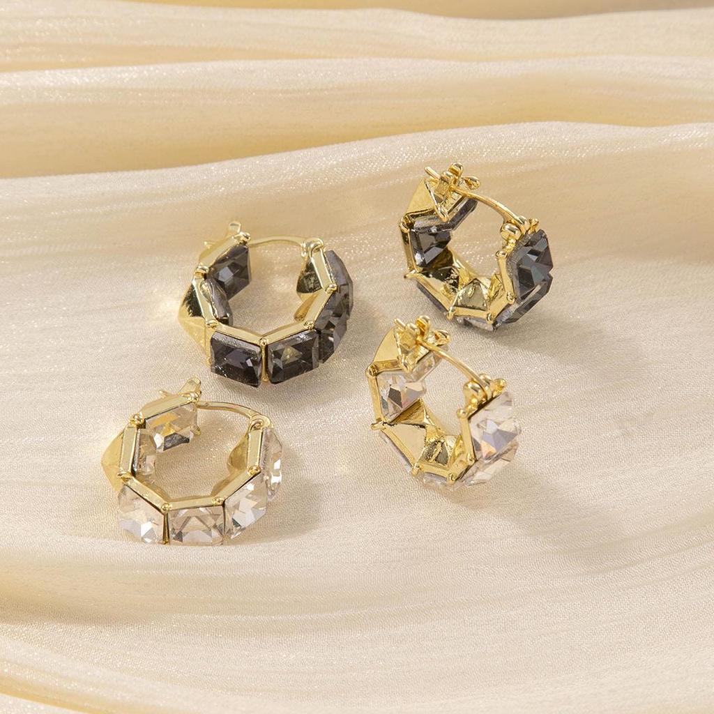 Korean Retro Square Crystal Ear Cuffs: 2024 Trendy High-End Luxury Earrings for Women