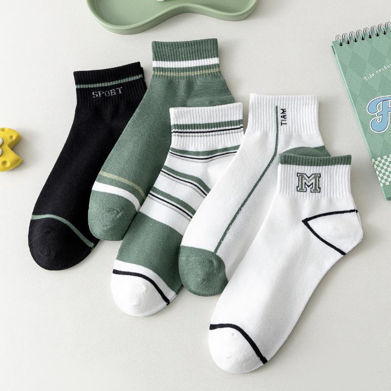 5/10 Pairs Comfortable Casual Spring Summer Socks Men's Short Socks Green Versatile Ins Style Socks Letter M Men's Socks Striped Casual Sports Socks