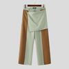 INCERUN Pantaloni drepți largi casual pentru bărbați, cu fermoar la talie, petice patchwork, înfășurați