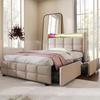 Tagesbett 90x200 Schlafsofa Hydraulischer Stauraum 7-farbige LED USB+Type-C Bettrahmen Lattenrost Leinen Beige (ohne Matratze) Schlafzimmer/Wohnzimmer
