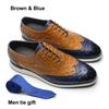 Luxury Handmade Cow Genuine Leather Men's Oxford Sneakers Lace-up Wingtip Brogue Ostrich Pattern Brown Blue Casual Footwear Male