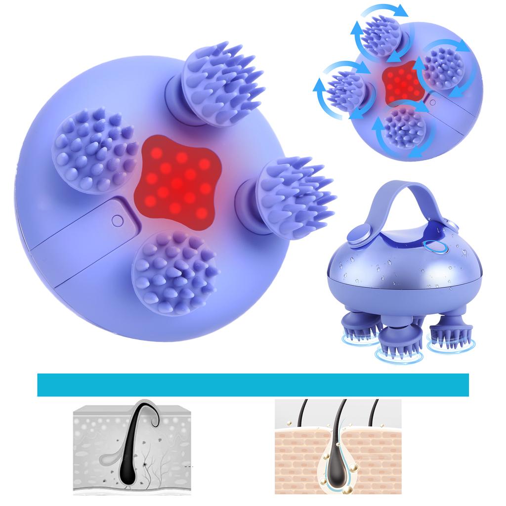 Maser electric pentru scalp cu 8 capete de masaj din silicon, portabil, IPX7 rezistent la apă, pentru creșterea părului, relaxarea stresului