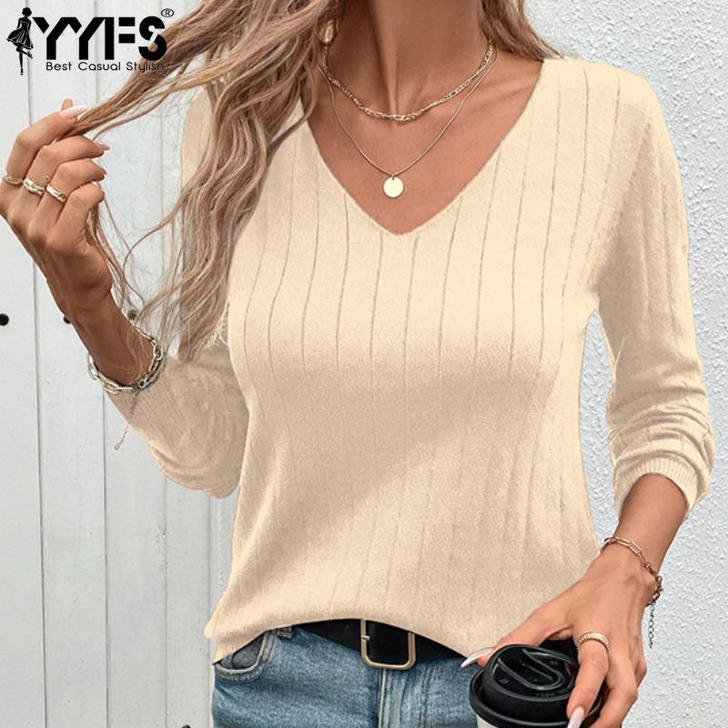 YYFS Moda dama ocazional toamna iarna imprimeu culoare uni pulovere cu maneca lunga cu decolteu in V