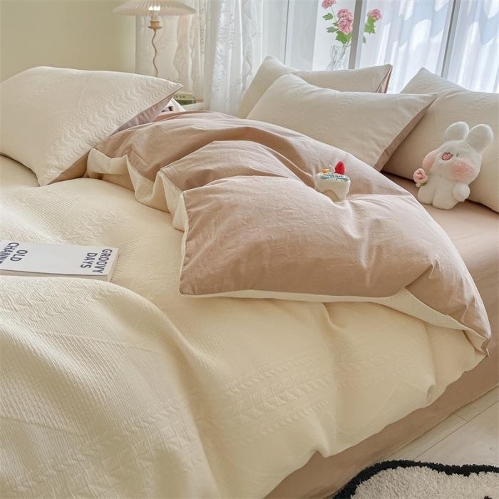 Class A Maternal And Infant Grade Cotton Three-Layer Yarn Four-Piece Set Of Pure Cotton Single Double Bed Sheet Quilt Cover Soft Three-Dimensional