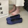 Blue satin retro square head cross strap Mary Jane shoes summer new flat bottom shallow mouth single shoes women