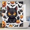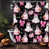 Halloween-themed shower curtain featuring spooky ghosts and ghouls perfect for your haunted house!
