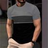 Tricou de bărbați cu gât rotund, cu mânecă scurtă, cu imprimeu 3D cu dungi, casual, pentru zi de zi