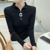 Pulover Tricotat Slim Fit cu Guler Mediu și Închidere cu Fermoar