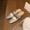 Sheepskin bag head slippers women's sparkling diamond buckle square head one word low heel temperament half drag empty single shoes