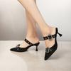 Large size pointed buckle high heels summer new thin heel single shoes square buckle high heel bag head slippers women
