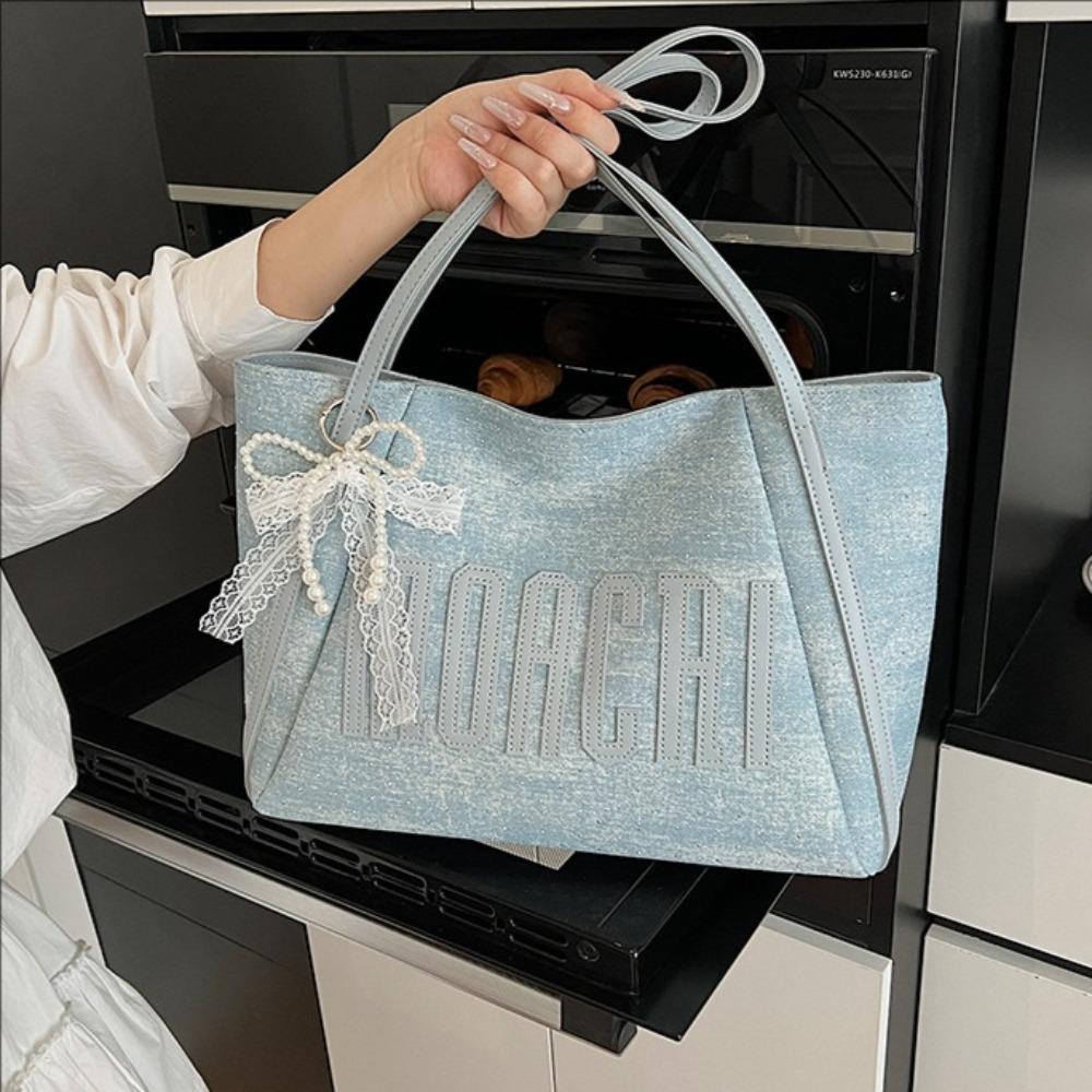 Large Capacity Versatile Trendy Bag Women's 2025 Summer Denim Tote Bag Casual Commuter Shoulder Bag