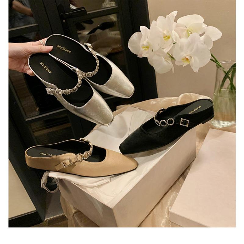 Sheepskin 4cm inner height increase half slippers rhinestone word with shallow mouth versatile bag head slippers