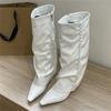 Eilyken Cizme înalte până la genunchi pentru femei, confortabile din piele moale, cu vârf ascuțit, toamnă iarnă, cu toc pană, cu fermoar, pantofi Botas Largas De Mujer