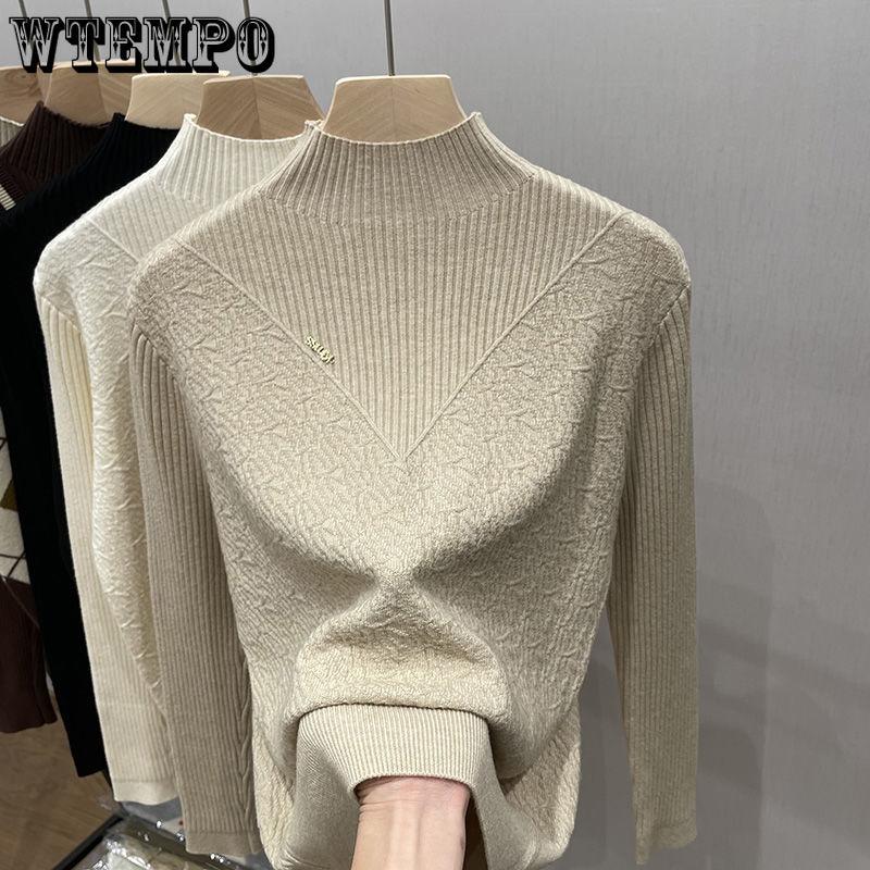 Elegant Knitted Top for Women Autumn and Winter Half-high Collar Versatile Sweater Fashionable