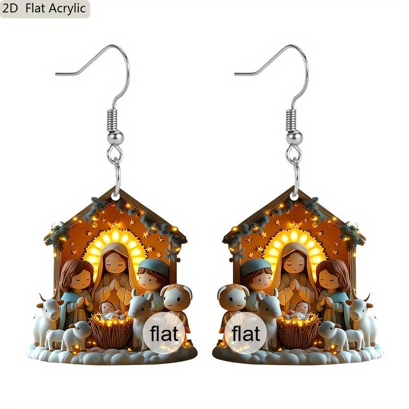 2D Flat Art Nativity Scene Epiphany Jesus Nativity Pattern Christian Spirit Religious Painting Acrylic Earring Jewelry for Women Female