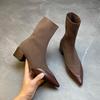 Autumn and winter new short boots retro women's thick heel pointed single boots Chelsea advanced elastic thin boots splicing
