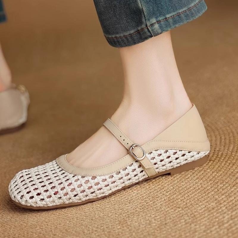 Sheepskin version~ Flat sole shoes women's new Mary Jane shoes with skirt soft sole hollow hole shoes