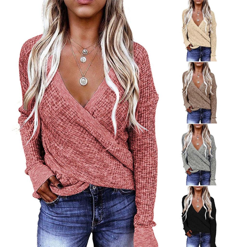 Women Trendy Long Sleeve Knit Tops is Lightweight, Relaxed and Comfortable to Wear. Feature: Sexy V Neck, Long Sleeve Tops, Knit, Basic Solid, Loose Flowy Design. Pair with variety of jeans, skirts, and jeggings for a look that's easy to love all long. This sexy perfect for casual, party, beach, club, daily and fall winter wear.