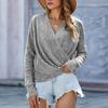 Sexy V Neck, Long Sleeve Tops, Knit, Basic Solid, Loose Flowy Design