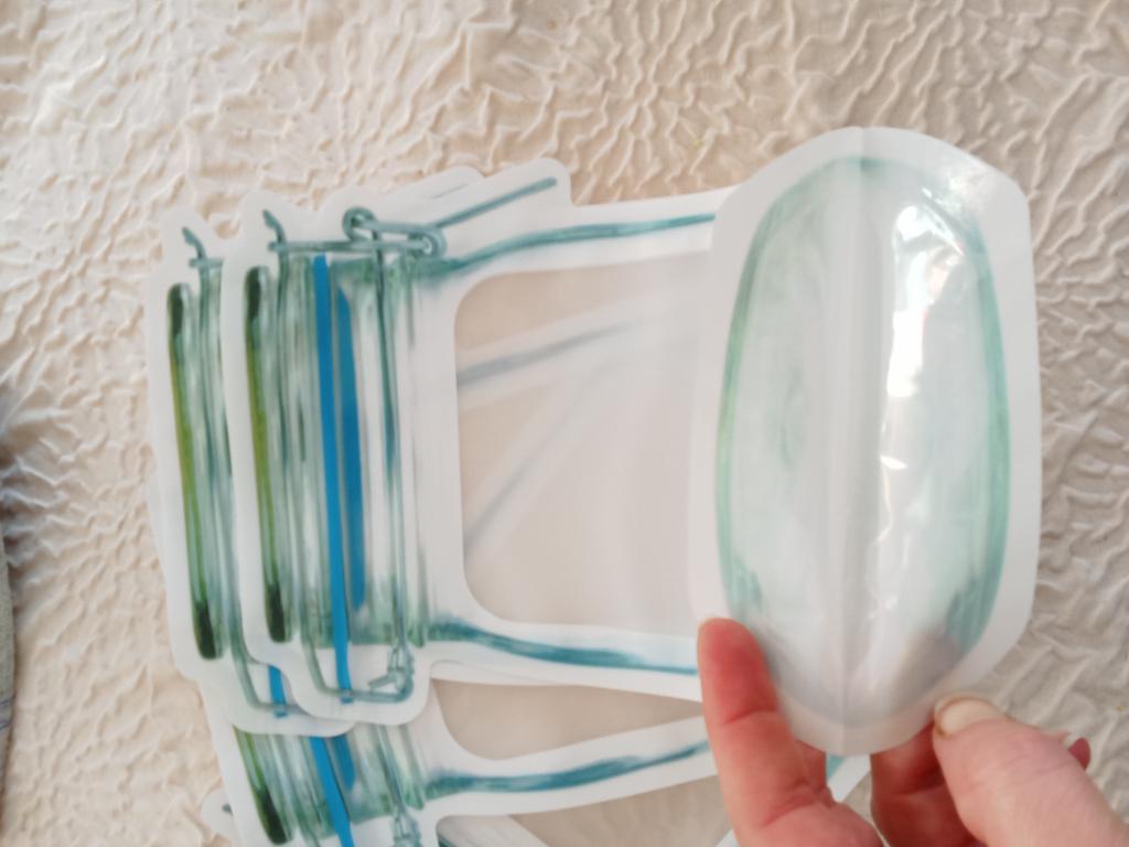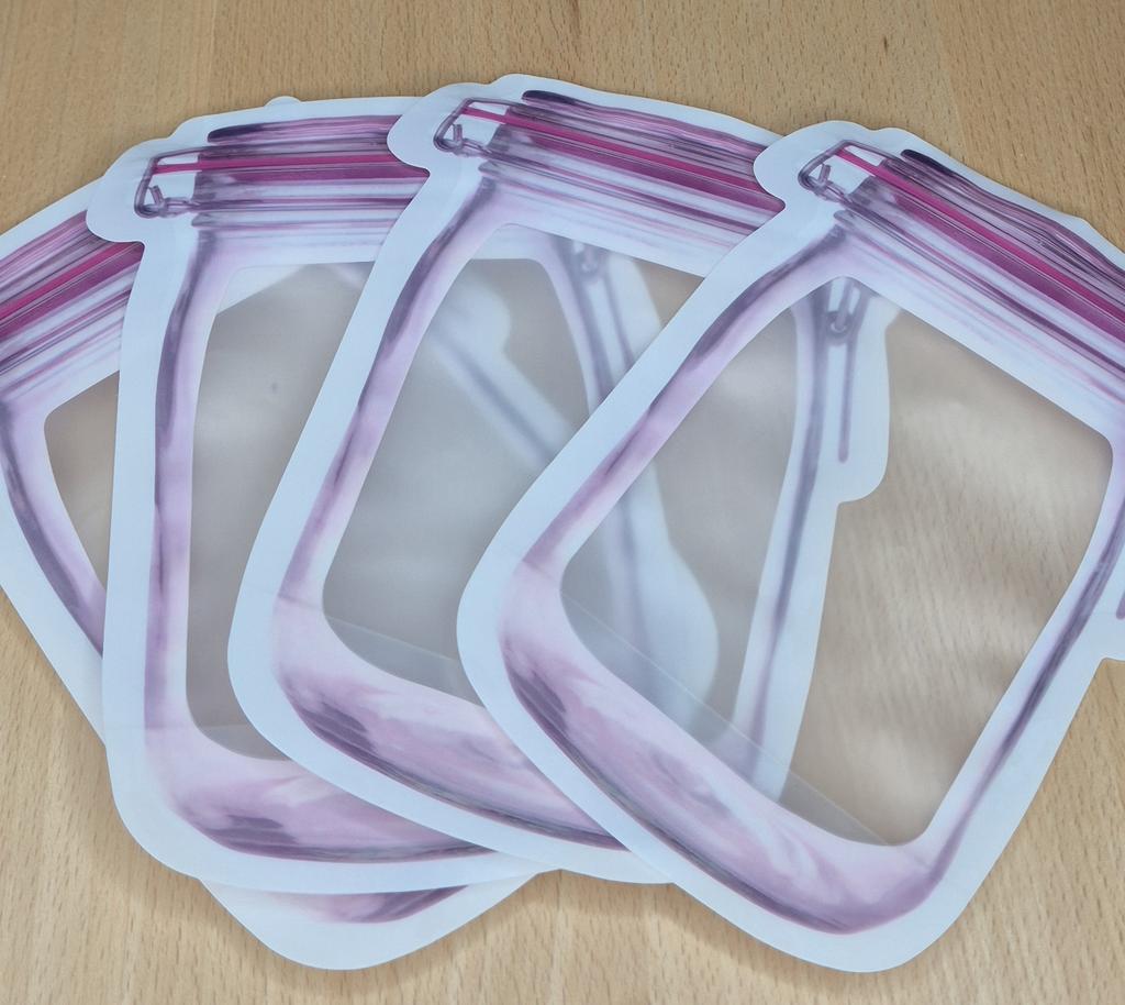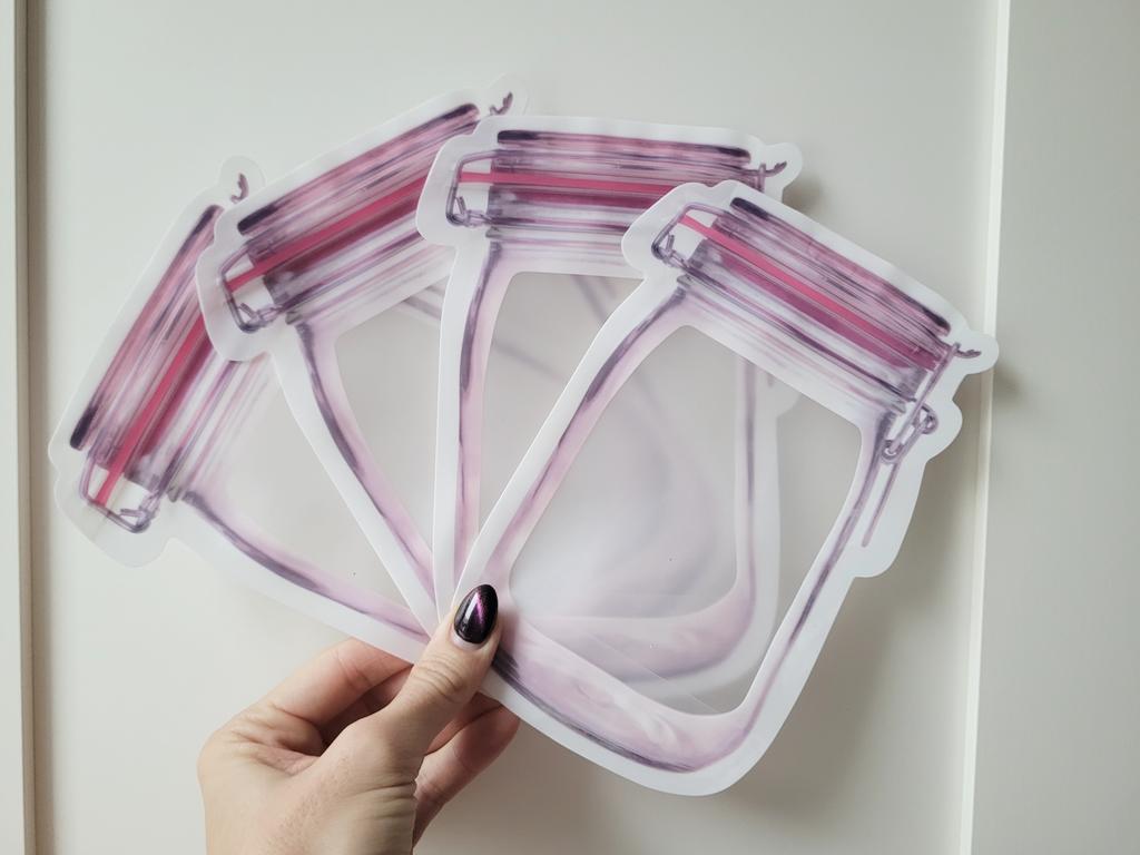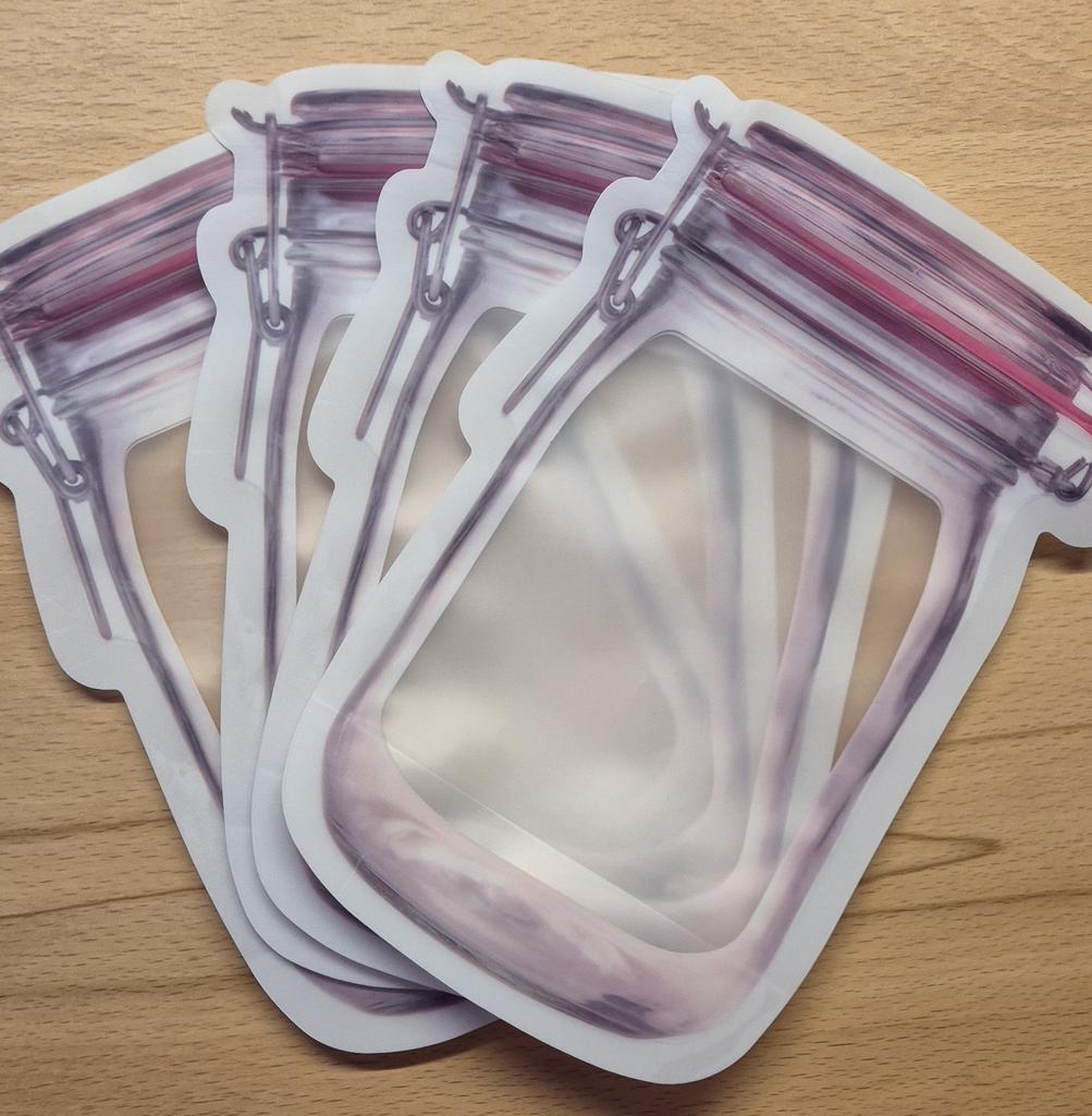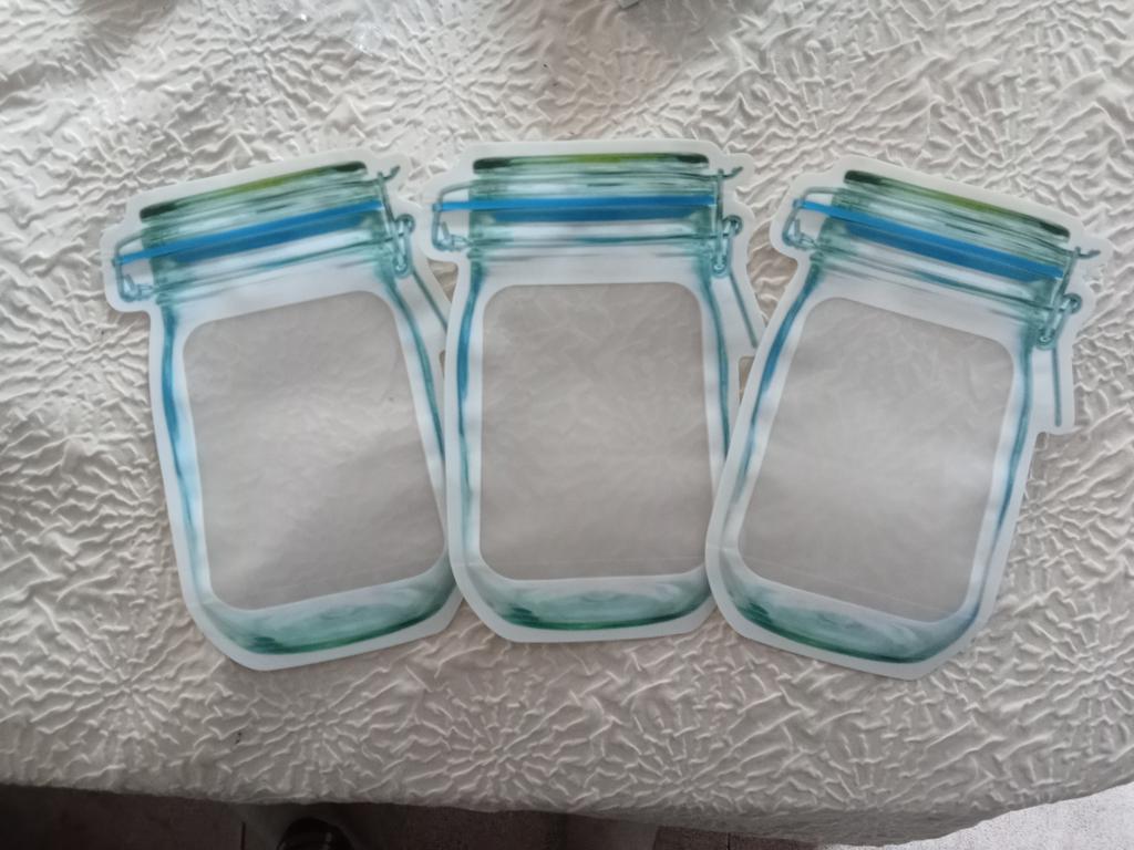 Pungi reutilizabile cu fermoar în formă de borcane pentru depozitarea produselor alimentare