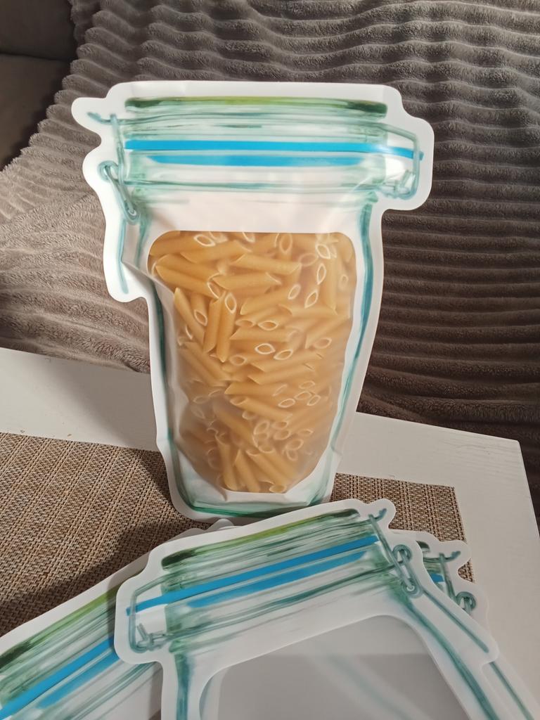 Am cumpărat înainte de altă mărime și s-au dovedit a fi mai bune decât mă așteptam 😃 Este din plastic foarte gros 😃 de super bună calitate ✅ Închiderea cu fermoar este grozavă 😊 În plus, simulează perfect borcanul 🫙 Se sprijină și îl poți pune în picioare pe un raft Fiind transparenți, se vede ce avem în interior Sunt grozavi, sincer 💥 Ambalare corectă 📦 Livrare rapidă ✈️ 100© recomandabil 💯
