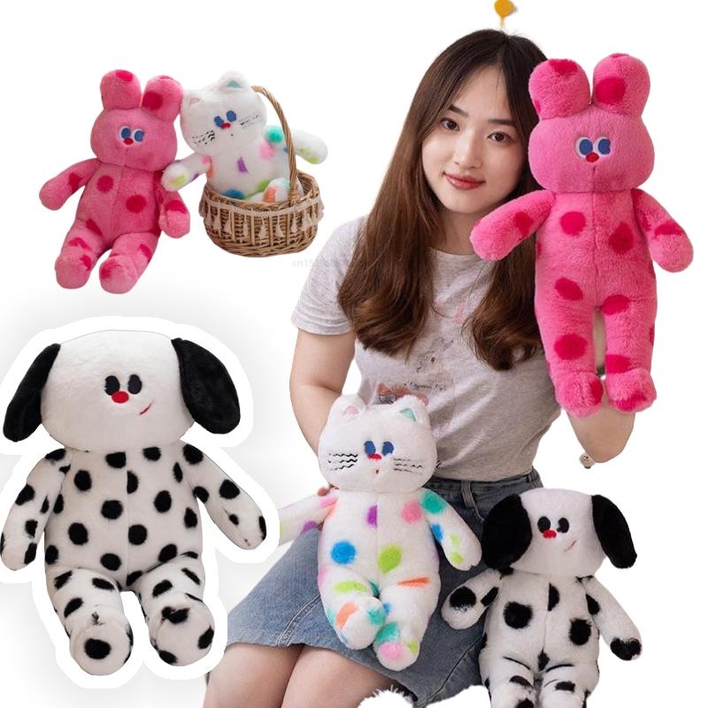 Dot Cat Stuffed Animal Plush Super Soft Dog Bunny Dolls Cartoon Chroma Pillow Toys Soft Birthday Gifts For Girls Room Decor