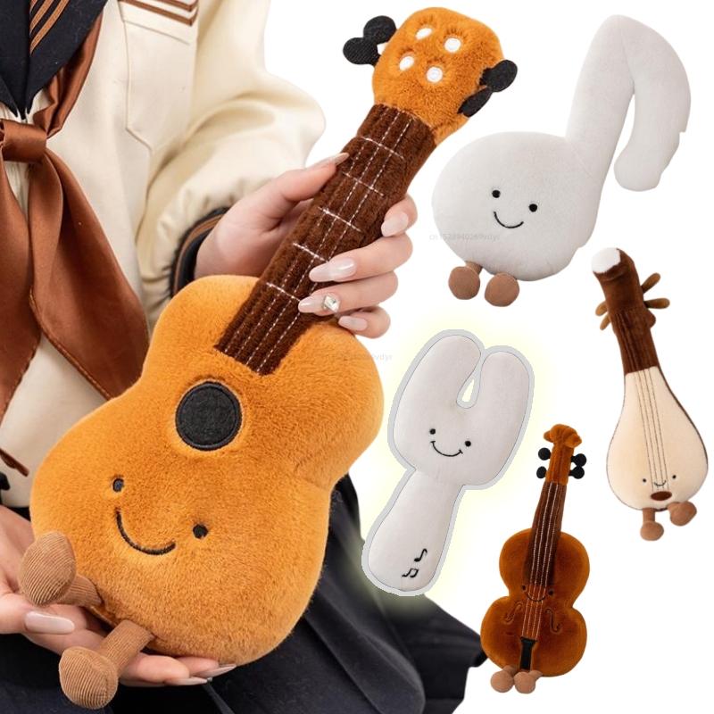New Simulation 3D Guitar Pipa Plush Toy Note of Music Soft Throw Pillow Musical Instrument Pillows Girl Boys Birthday Xmas Gifts