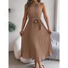HNXC Spring Summer Elegant Stand-up Collar Sleeveless Waisted Pleated Long Dress Women's Clothing
