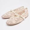 Brand Designer Buckle Ballet Flats Women Fashion Mesh Embroidery String Bead Mary Jane Shoe Elegant Slingback Dress Shoes Women