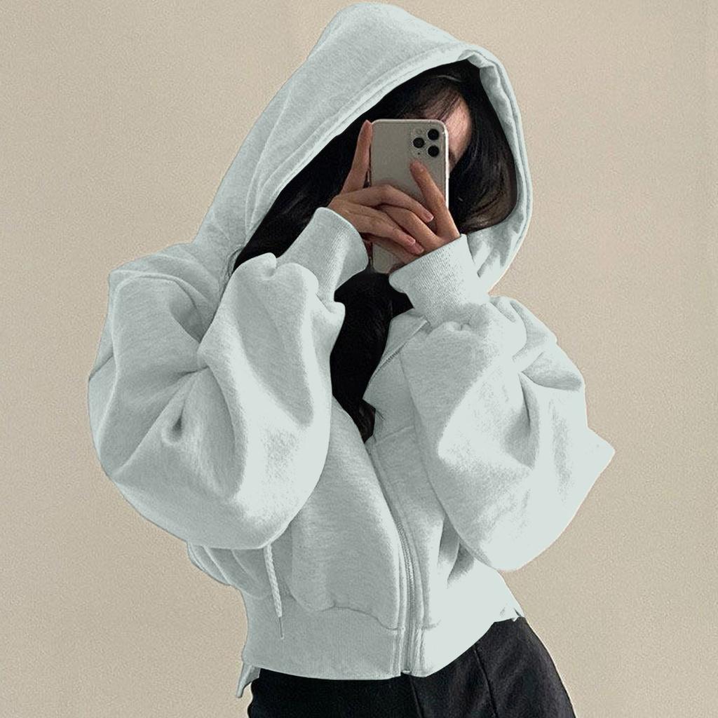 Hanorac cu glugă pentru femei, lejer, casual, culoare solidă, cu fermoar, culoare solidă