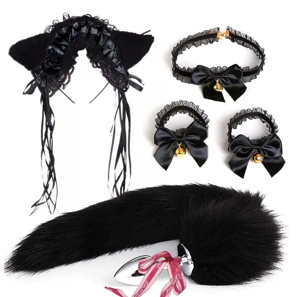 5pcs Set Anal Toys Cute Maid Cat Girl Fox Tail Buttplug Metal Anal Plug Sex Toys Exotic Cosplay Accessories New Adult Toys