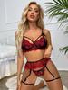 Hot Cut Red See Through Lingerie Women's Underwear Mesh Yarn Lace Transparent Bra Sexy 4 Piece Erotic Lingerie Set Luxury