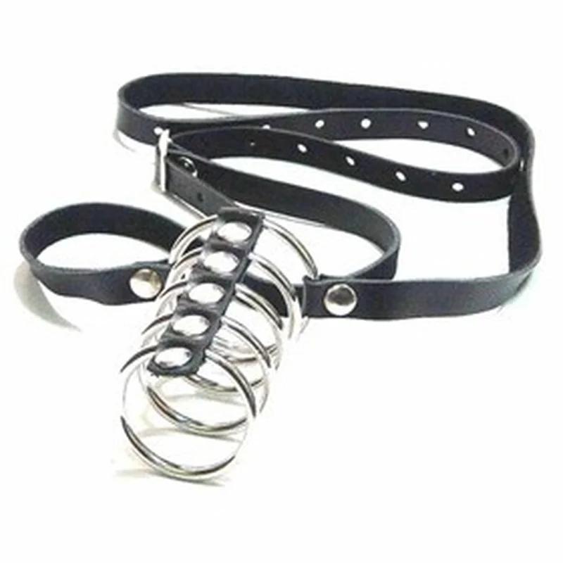 Cock Cage PU Leather 5-ring Pants Penis Ring Male Chastity Devices Anti-Derailment Toys Bondage Belt Fetish SM Sex Tools