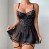 Garter Pajamas Exquisite Hot Women's Lingerie Fancy Bra With Thong Leg Rings Erotic Nightgowns Plus Size Underwear Sleepwear Set
