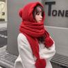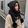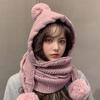 Women's Korean Style Versatile Knitted Hat Scarf Integrated Cute Pom Pom Ear Protection Thickened Warm Hat for Autumn Winter