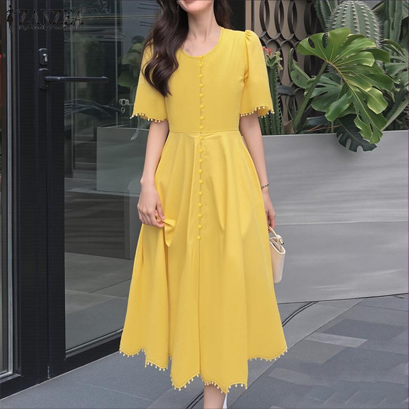 ZANZEA Rochie Casual de Vară cu Mânecă Scurtă și Decolteu în V pentru Femei
