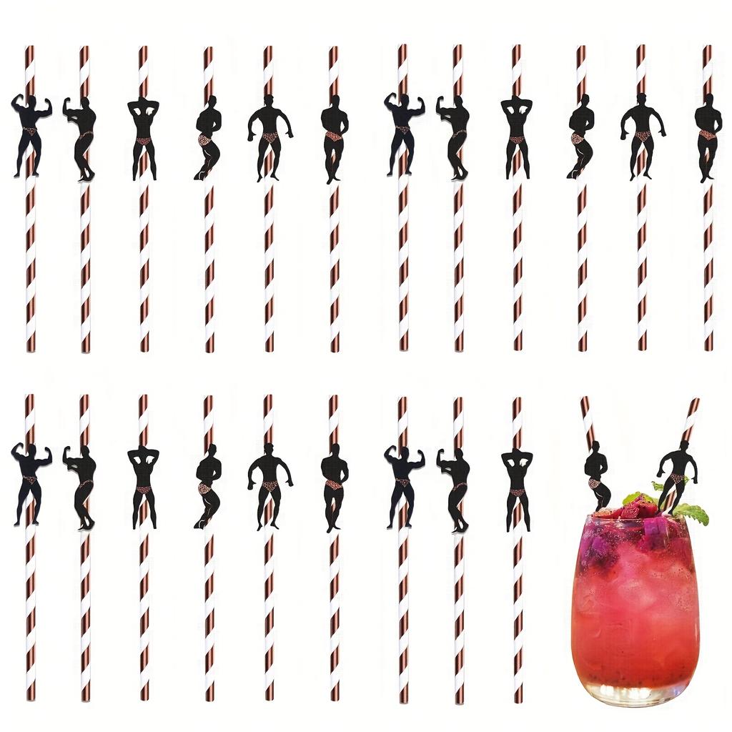 24pcs Single Party Straw Rose Golden Dancer Straw and Confetti Fun Adult Drinking Straw Bachelor Party Love Wedding Party Celebration Decor Elements