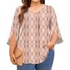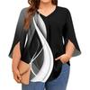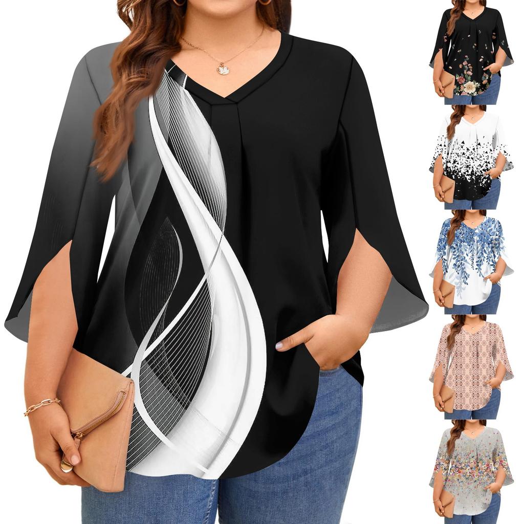 Bluze de damă imprimate cu gât în V, mărimi mari, mâneci 3/4, bluze elegante