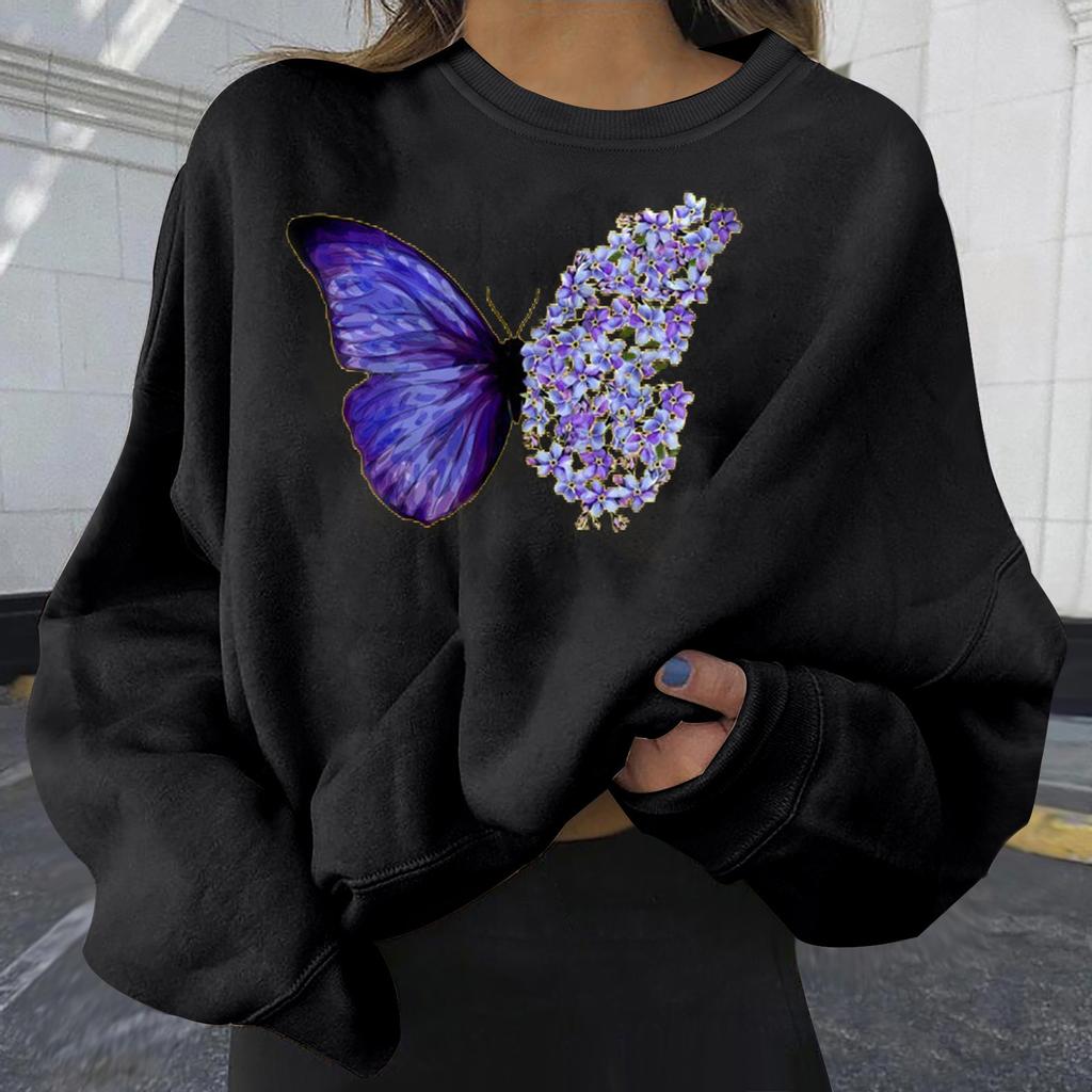 Moda femei casual cu maneca lunga fluture de imprimare Doamnelor Sweatshirts Topuri