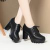Spring and Autumn soft leather women's shoes black waterproof table high heel platform women's lace-up single shoes mother leather shoes