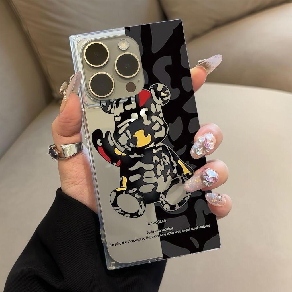 Square Back Tube Protection Clear Case For iPhone 12 16 ProMax 15 Plus 14 Pro Max 13 11 Anti-Oxygen,Black Violent Bear Pattern Casing