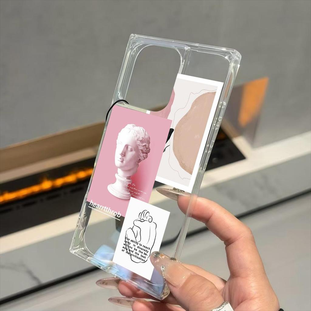 Clear Square Back Tube Case Protection For iPhone 12 11 14 Pro Max 16 ProMax 15 Plus 13 Anti-Oxygen,Art Statue Pattern Casing