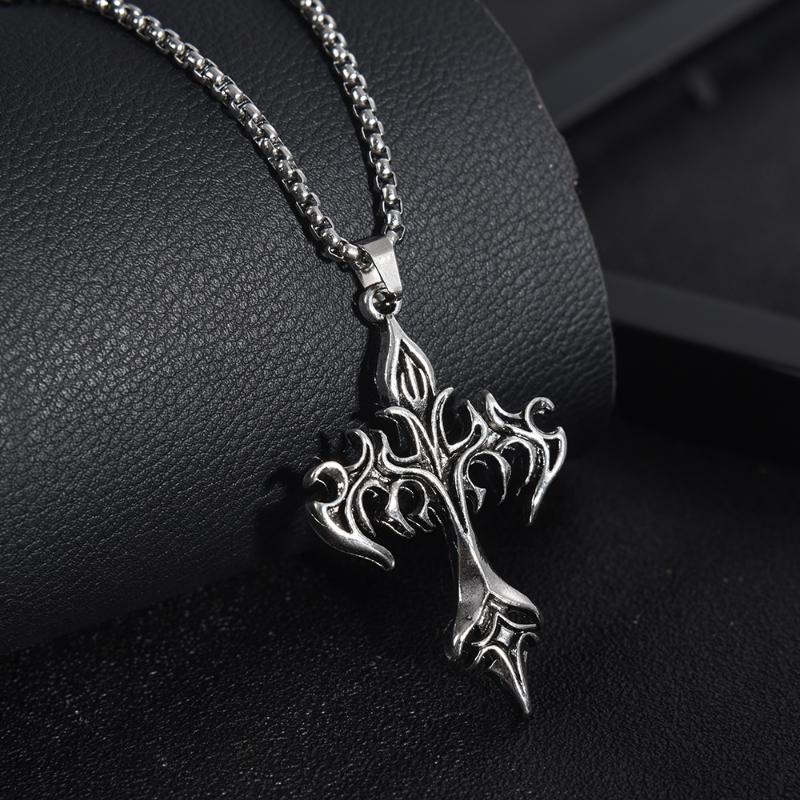 Gothic Vintage Flame Cross Pendant Necklace Harajuku Chain Choker Women's Men's Accessories Jewelry